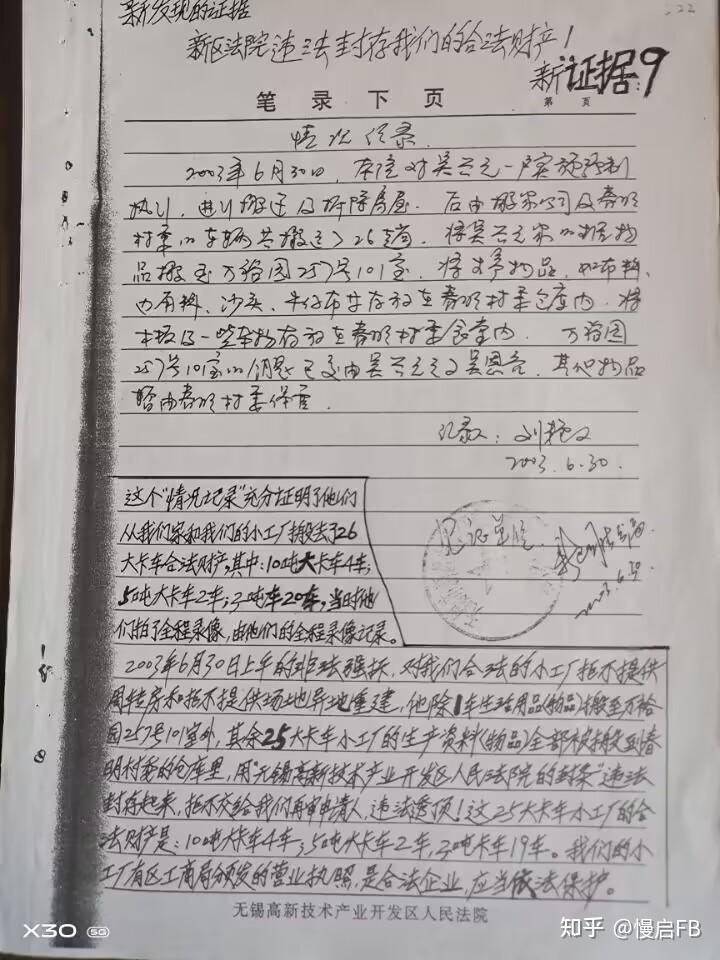 但是,在2003年6月30日,新区管委会书记贡培兴,在没有国有土地使用权批准文件、违法伪造不是建设部统一印制格式的假拆迁许可证、达不成拆迁补偿安置协议没有依法向房屋拆迁管理部门申请裁决、对他们的合法工厂拒不提供必要的场地重建的情况下,以及对所有生产资料和家庭财产没有依法清点过磅的情况下,新区管委会串通无锡高新技术产业开发区人民法院(以下简称:新区法院)副院长成英,违法强拆了他们的合法工厂和合法房屋!并违法强抢他们实际经营的25大卡车生产资料和1卡车家庭合法财产,(其中:10吨大卡车4车,5吨大卡车2车,3吨卡车20车,总吨位110吨,共26车)。当时新区管委会拍摄了全程录像。是铁证如山的违法强抢侵权事实。