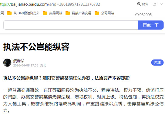 执法不公岂能纵容?泗阳交警魏某清枉法办案,法治尊严不容践踏